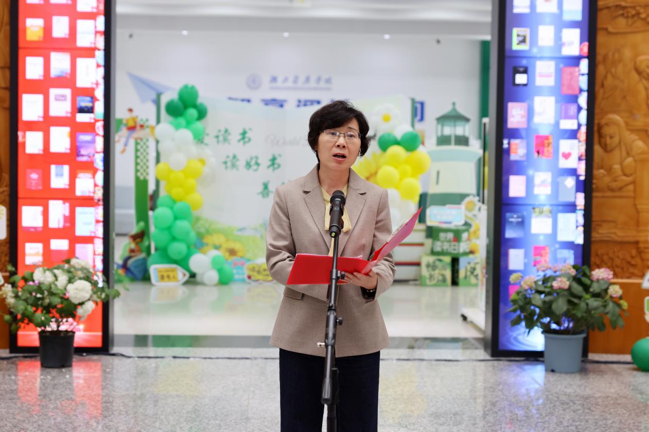 颁奖仪式后,校党委书记郑丹凤发表讲话。她指出,今年是《全民阅读促进条例》正式实施之年,也是“十五五”规划开局起步的关键节点,全民阅读已从社会倡导上升为国家法规保障的重要举措,高校作为文化传承与人才培养的主阵地,更应扛起推动阅读、建设书香校园的时代责任。她强调,阅读是立德树人的重要载体,是师生获取知识、启智增慧、涵养品德的核心途径,不仅关乎个人成长成才,更关乎学校发展与国家未来。结合学校发展实际,她向全体师生提出三点希望:一是要从“高”处着眼,以阅读筑牢信仰之基,从经典著作与前沿理论中汲取精神力量,将个人理想融入民族复兴伟业;二是要“实”处着力,以阅读夯实成才之路,既要深耕专业 “有字之书”,也要关注社会 “无字之书”,实现德智体美劳全面发展;三是要从“新”处着墨,以阅读激发创新之力,主动开展跨学科、跨领域阅读,提升数字素养与思辨能力,以创新思维应对时代挑战。最后,她寄语全体师生,让阅读成为生活习惯,让书香充盈校园角落,以阅读之力助力成长、赋能未来。