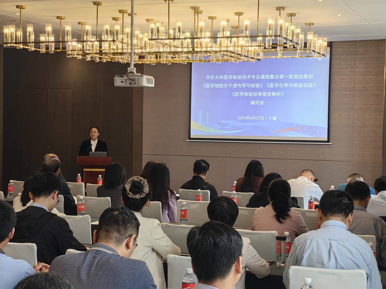 本网讯(通讯员 邓闻达)4月27日,由人民卫生出版社主办、湖北医药学院和直属附属太和医院承办的华东本科医学检验技术专业课程整合《医学细胞分子遗传学与检验》等三本规划教材编写会顺利召开。校党委常委、副校长谭艳出席会议并致辞。教材评审委员会主任委员郑铁生教授、人民卫生出版社华东分社吴磊主任、来自全国各地医学检验领域的90余名教材编委专家参加会议。本次会议由生物医学工程学院副院长、直属附属太和医院检验部主任张吉才教授主持。