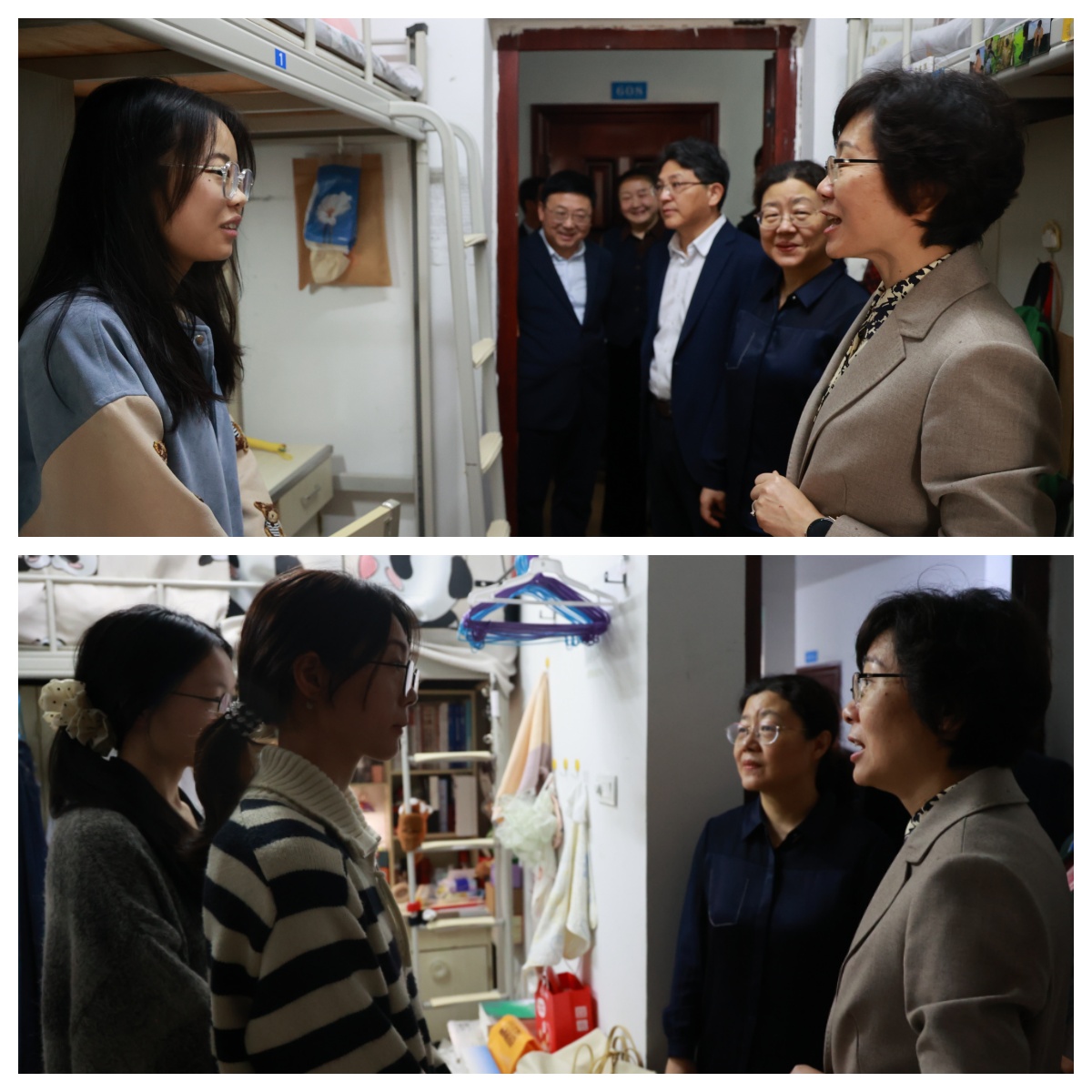 随后郑丹凤一行前往临床科室和医学研究所、学生宿舍看望了研究生(专硕、学硕)和本科生代表,郑书记关切地询问了同学们的学业情况,详细了解毕业生就业状况与求职需求,勉励大家树立科学的就业观;她询问同学们对校区住宿和生活条件还有什么要求,并嘱咐在场的领导老师们要克服困难为同学们创造一个良好的学习生活环境,积极为毕业生就业做好保障及服务工作。郑丹凤还重点提醒同学们注意人身财产、用电消防及出行交通安全,确保度过一个平安祥和的五一假期。