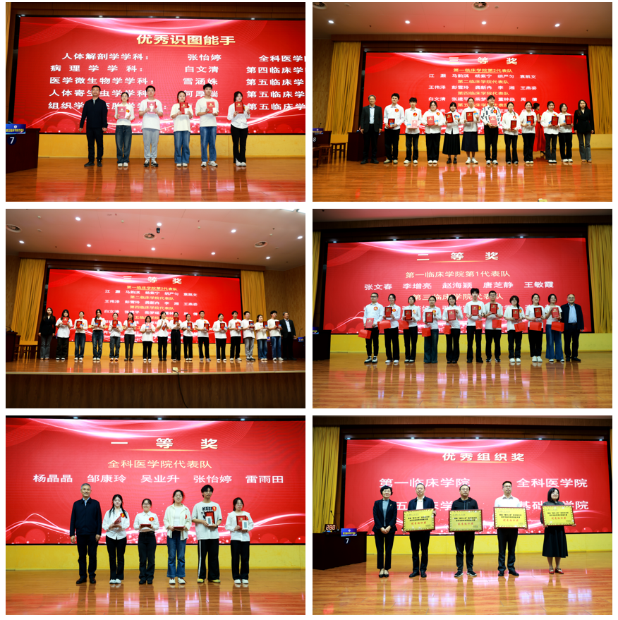 经过激烈角逐,全科医学院代表队斩获一等奖;第一临床学院第1代表队、第三临床学院代表队获二等奖;第一临床学院第2代表队、第二临床学院代表队、第四临床学院代表队、第五临床学院代表队、基础医学院 / 生物医学工程学院 / 第六临床学院联合代表队获三等奖。